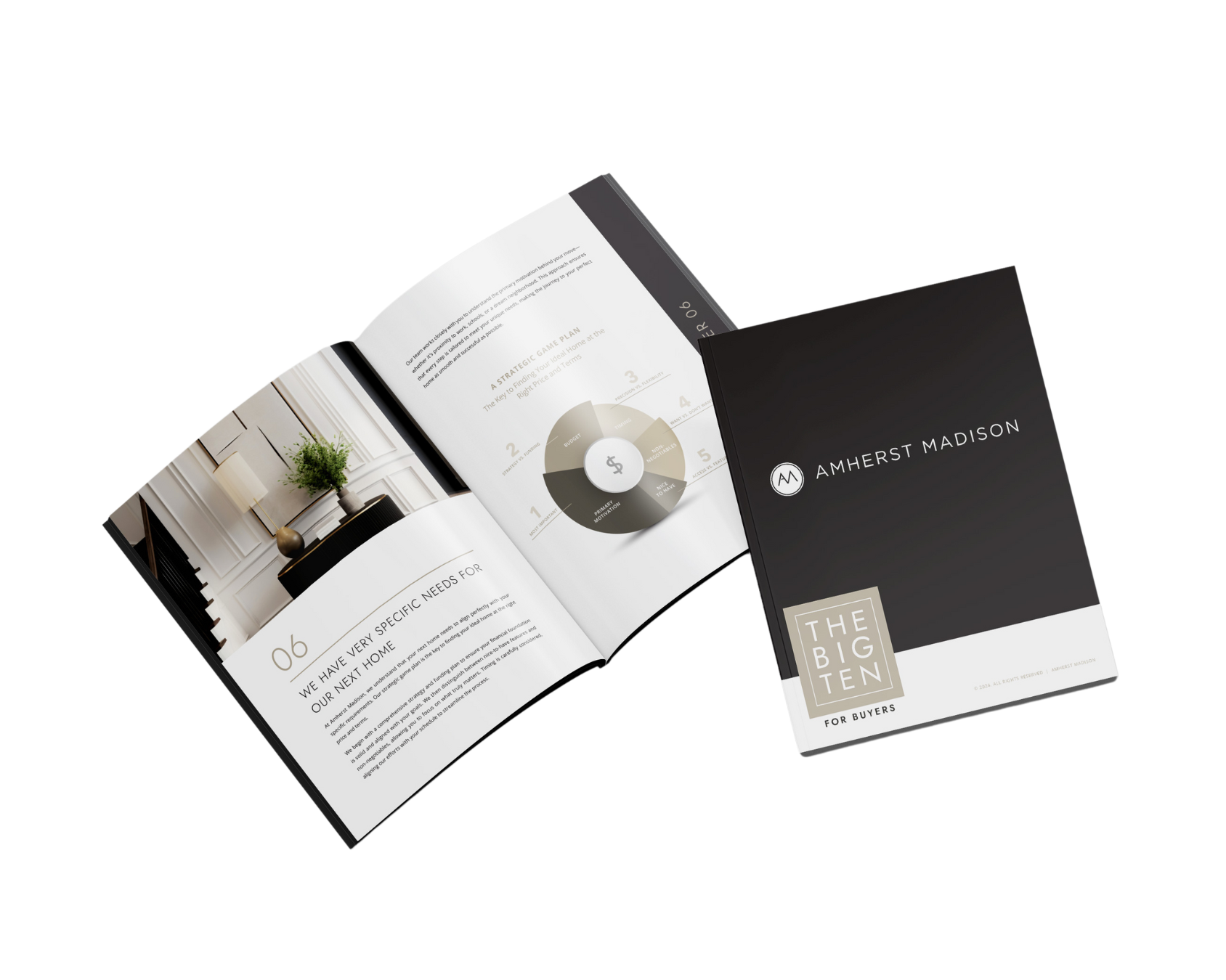 Welcome to Amherst Madison’s Big Ten Booklet—a guide created to address the core questions and concerns of today’s home buyers. Buying a home can be exciting yet challenging, often bringing up questions buyers may hesitate to ask. We developed this resource to empower you with the insights and support needed to navigate this milestone confidently. The Big Ten addresses common—and sometimes unspoken—concerns in the buying process, from understanding the market to finding the right home and securing a fair deal. Each section draws from our experience with buyers like you, blending practical insights with straightforward advice. Our goal is to help you feel informed, supported, and valued. We hope the Big Ten answers your questions and makes your home-buying journey more rewarding, providing practical guidance so you feel confident every step of the way.
